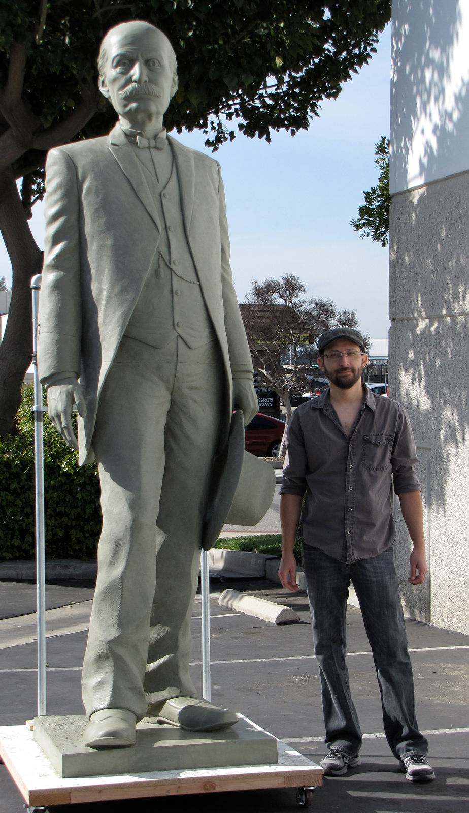 Sculptor Alfred Paredes stands next to his statue of Lucky Baldwin before it gets bronzed.