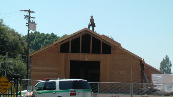 Warehouse being restored is visible from Santa Anita entry way.